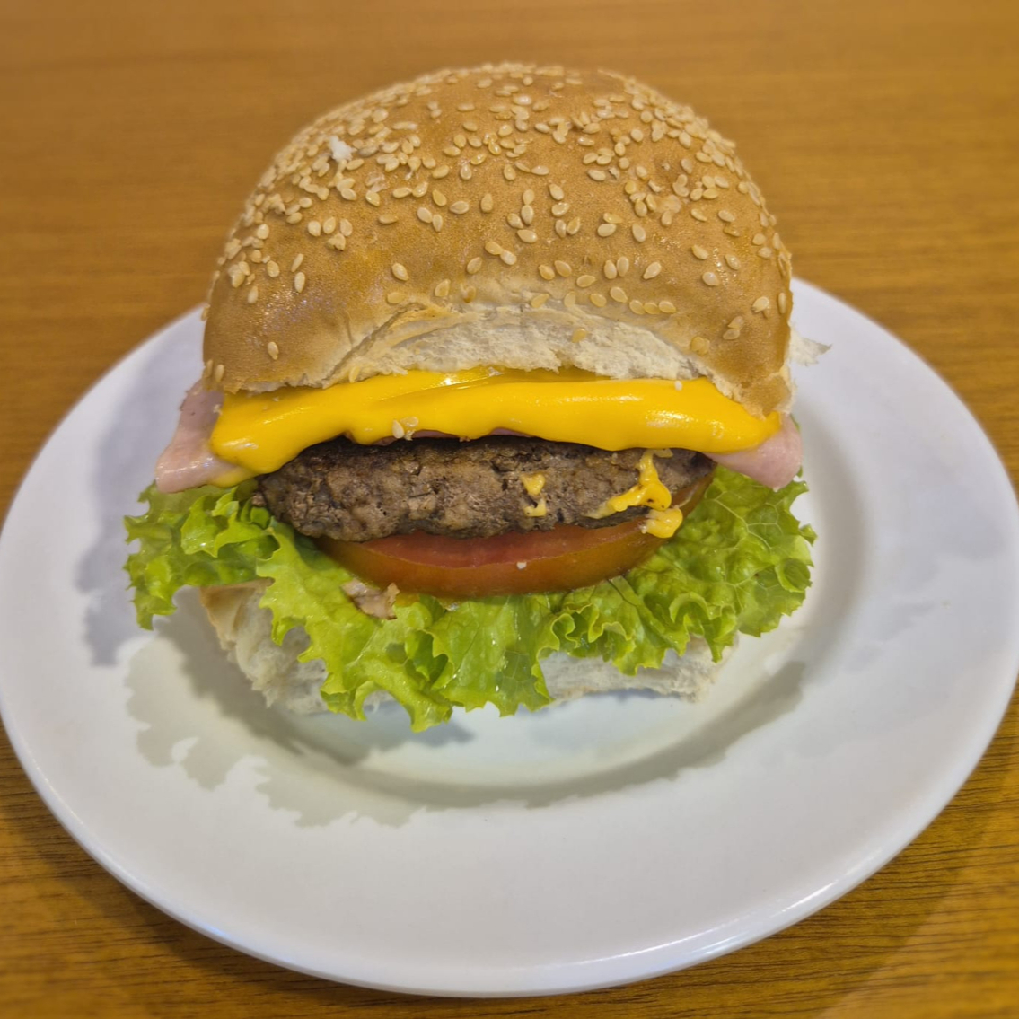 Pão De Hamburguer, Hamburguer 90 Gr, Presunto, Queijo, Alafce E Tomate
