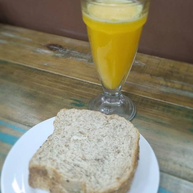 Sanduiche natural de frango com cenoura em pão integral + Suco de laranja 500ml