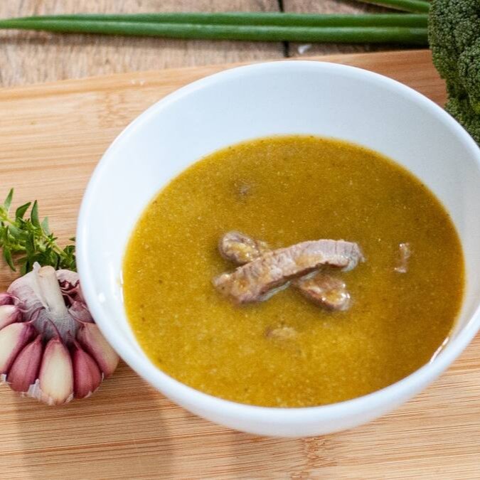 Ingredientes: Couve flor, carne bovina, cebola, batata, tomate, azeite de oliva, alho e sal.