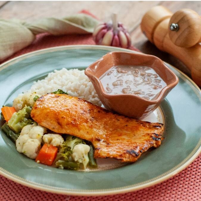 Filé De Frango Grelhado, Arroz Branco, Feijão E Legumes