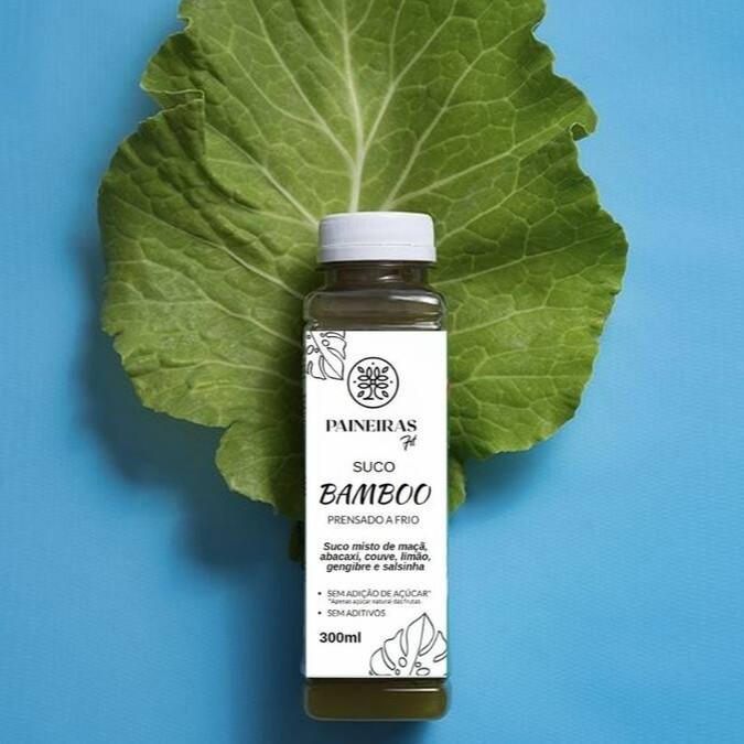 Ingredientes: Suco de maçã integral, suco de abacaxi integral, suco de couve integral, suco de limão integral, suco de gengibre integral e suco de salsinha integral.