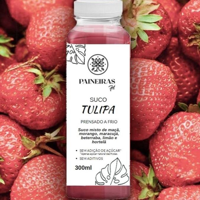 Ingredientes: Suco de maçã integral, suco de morango integral, suco de maracujá integral, suco de beterraba integral, suco de limão integral e suco de hortelã integral.