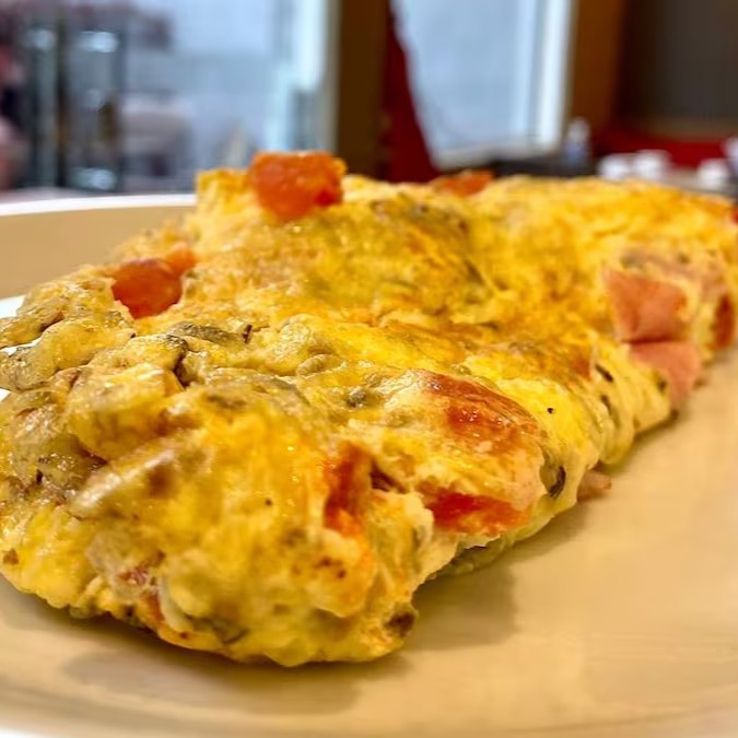 Pão de forma, presunto, queijo mussarela, ovo frito e orégano, tostado com manteiga.