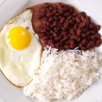 Vai uma marmita pequena com: Arroz, feijão preto, farofa,2 ovos frito e batata frita (Foto ilustrativa)