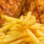 Vai uma marmita pequena com: Arroz, feijão preto, farofa, frango grelhado e batata frita ( Foto ilustrativa)