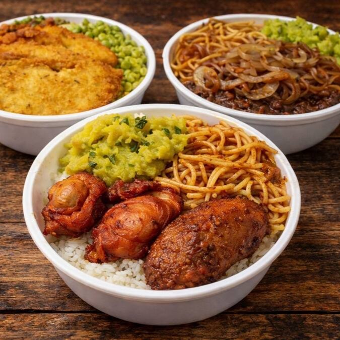 Leve 3 Marmitas P, entre elas: Linguiça de Toscana, Bisteca, Calabresa Acebolada, Filé de Frango, Bife Acebolado, Carne de Panela ou Almondegas ao Molho.