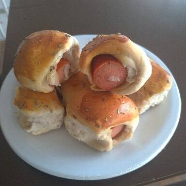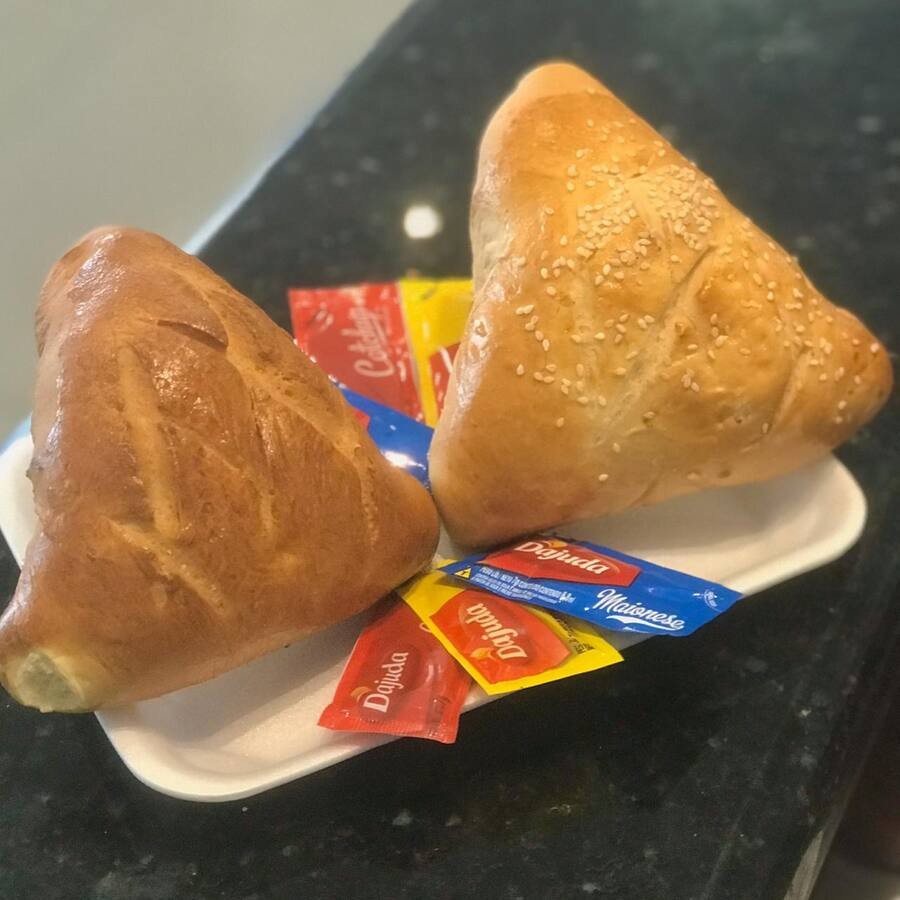 Salgado assado com Catupiry, tomate, queijo presunto e vina.