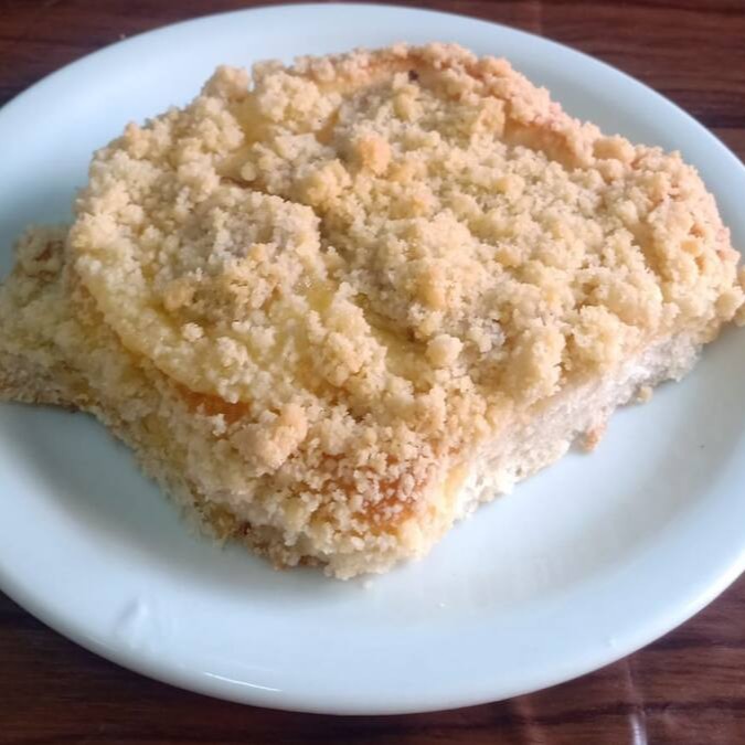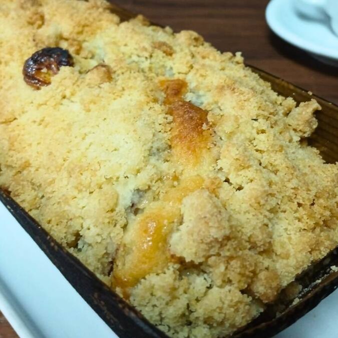 Experimente nosso delicioso chineque de banana! Feito com massa fofinha, recheio de creme e banana, finalizado com uma crocante farofa por cima.