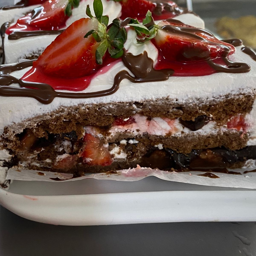 Bolo De Morango Com Chantilly E Brigadeiro (fatia)