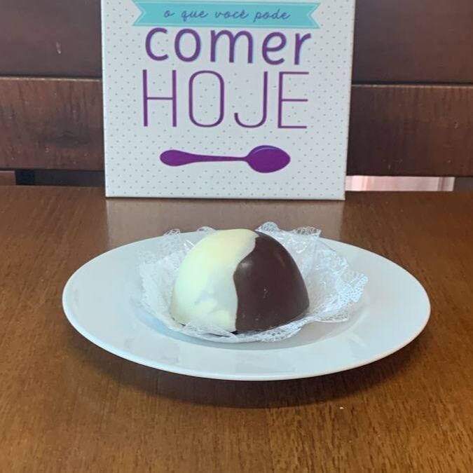 Esse é para doceiros e doceiras! Tem recheio cremoso de brigadeiro e leite condensado, a cobertura é dura com chocolate branco e preto; e dentro vai um biscoito Negresco. Peso aproximado: 170g