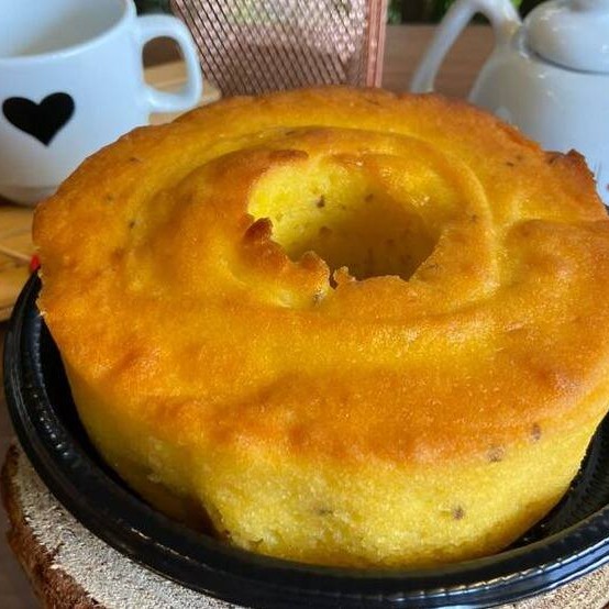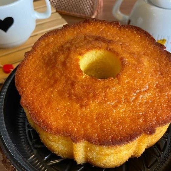 Massa especial, recheado com creme chiffon e abacaxi em calda.