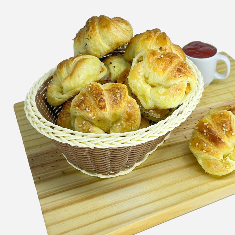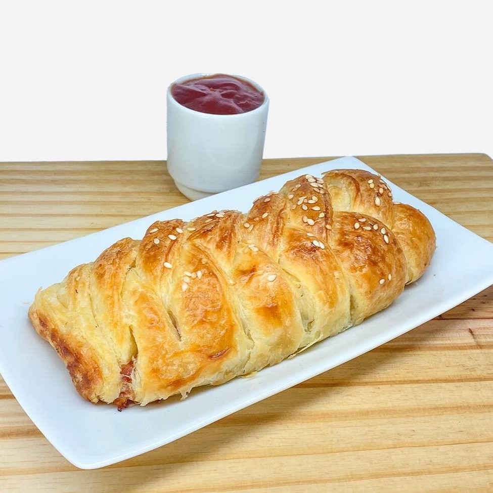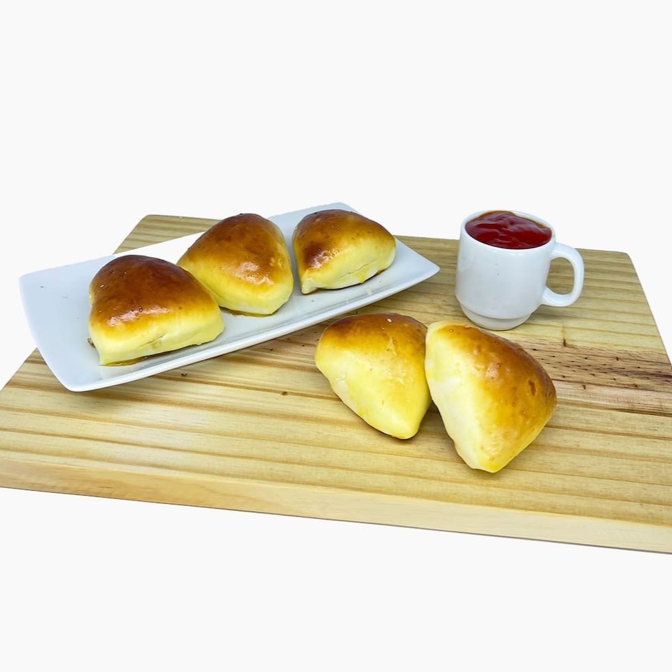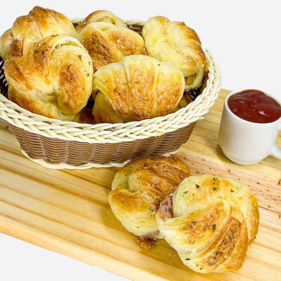 Massa especial com recheio de frango, cream cheese e queijo , envolta de queijo parmesão.