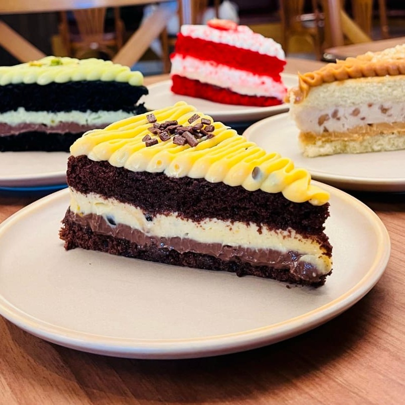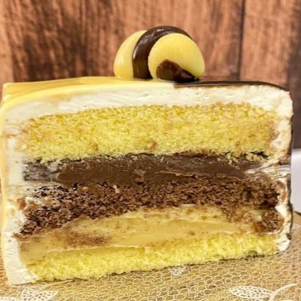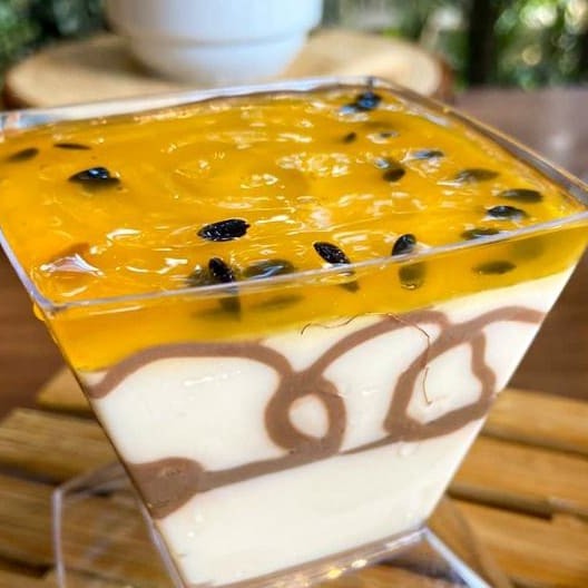 Massa de chocolate, umedecida com calda, com recheio cremoso de chocolate e creme de maracujá, finalizada com uma deliciosa cobertura de creme de chocolate. Uma união perfeita entre a acidez refrescante do maracujá e a intensidade do chocolate.