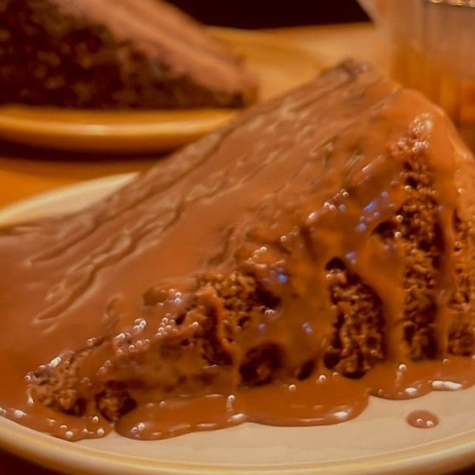 Delicioso Bolo de chocolate, recheado com trufa de chocolate e calda de chocolate quente