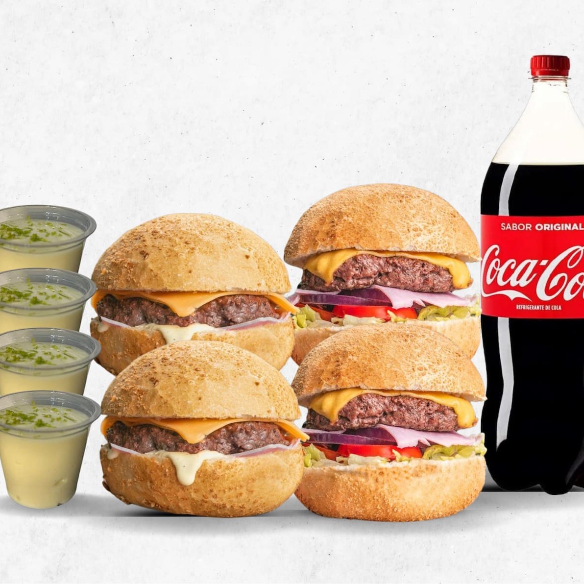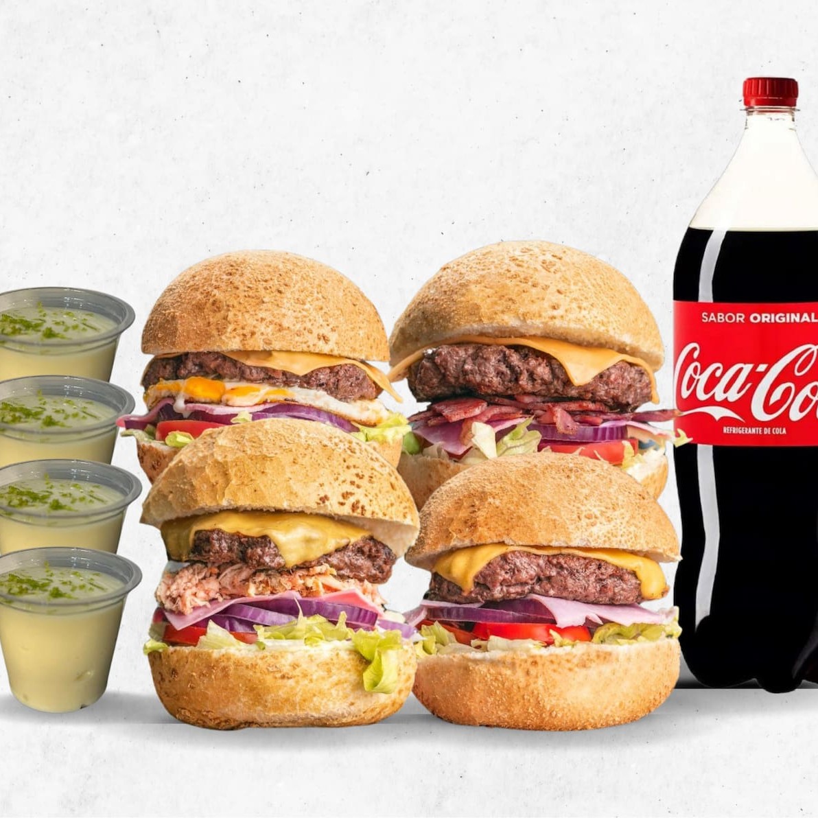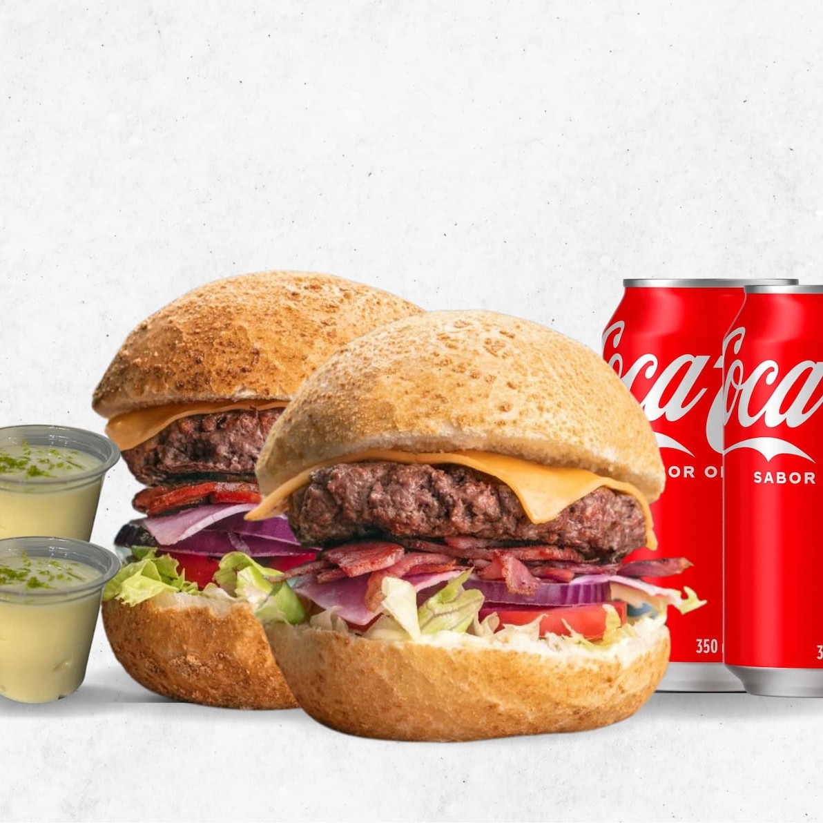2 X Salada + 2 X Burguer + 1 Coca Cola 2l + 4 Mousse de Limão de 60ml casa