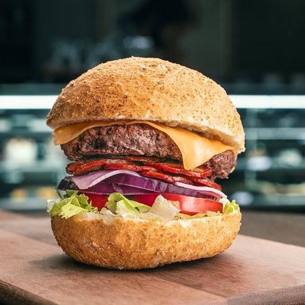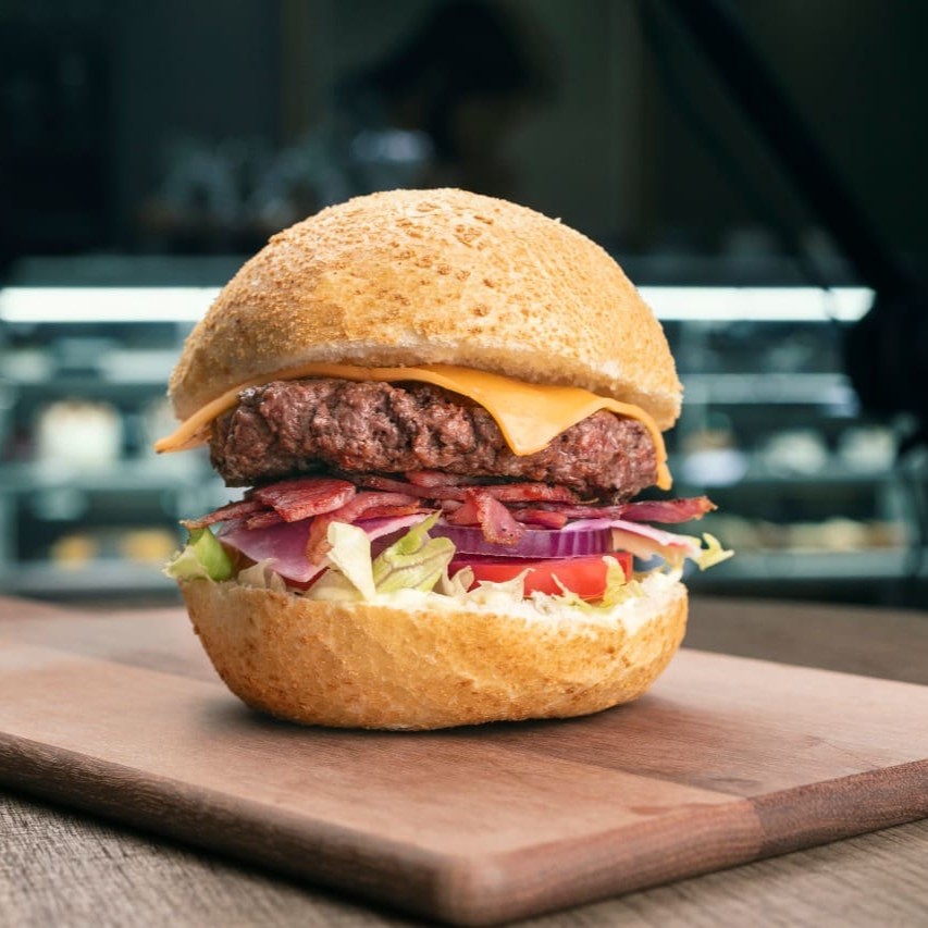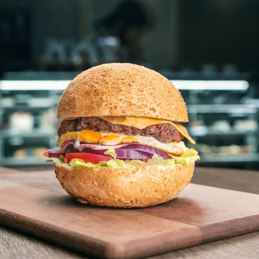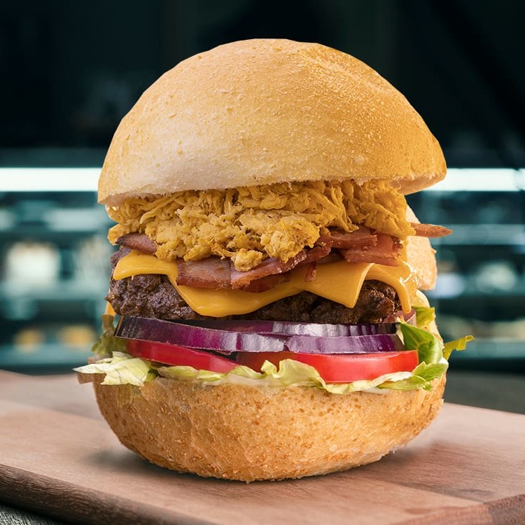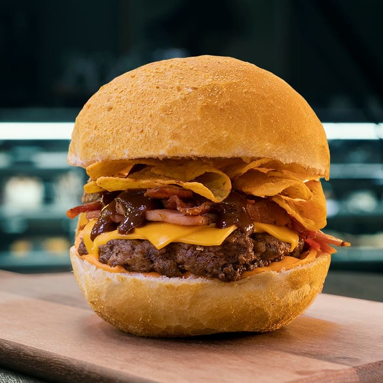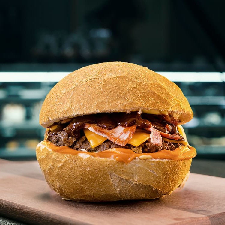 Que tal sair do óbvio? Esse super burguer conta com hambúrguer artesanal, aquela maionese da casa, cheddar em fatias, cheddar super cremoso, bacon, barbecue, picles e cebola caramelizada no nosso pão d'agua.