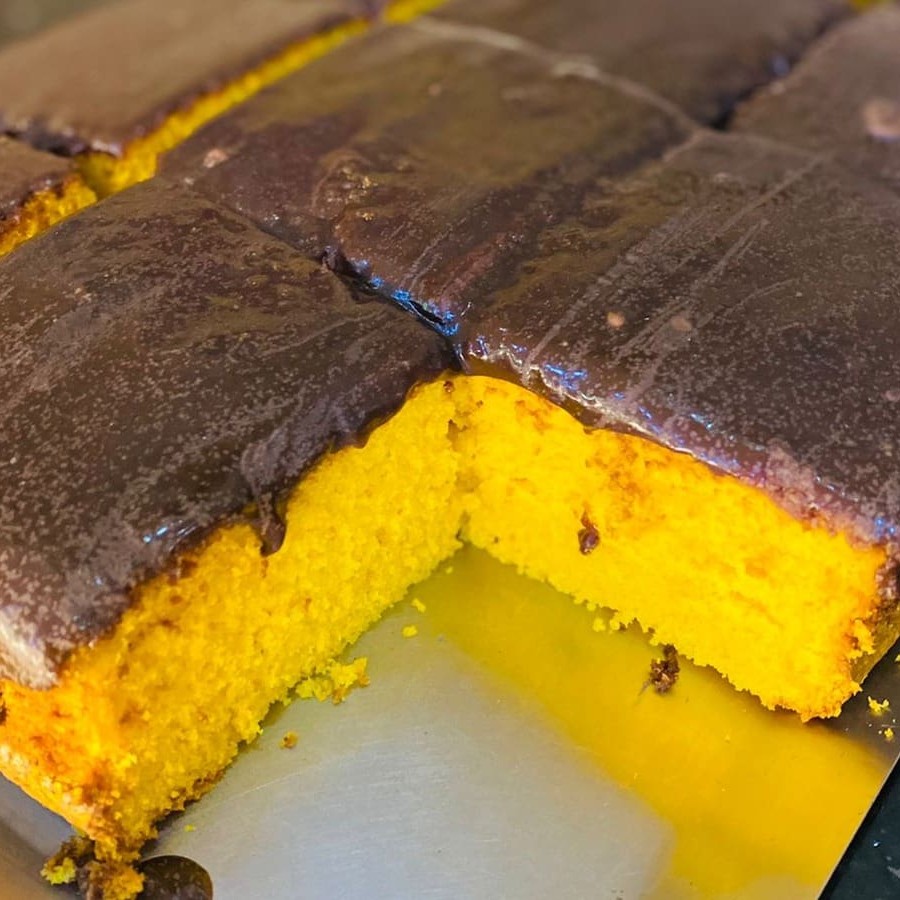 Bolo de cenoura com cobertura de chocolate. Produto 100% artesanal