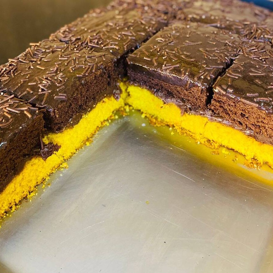 Bolo de cenoura e bolo de chocolate com recheio de brigadeiro. Produto 100% Artesanal
