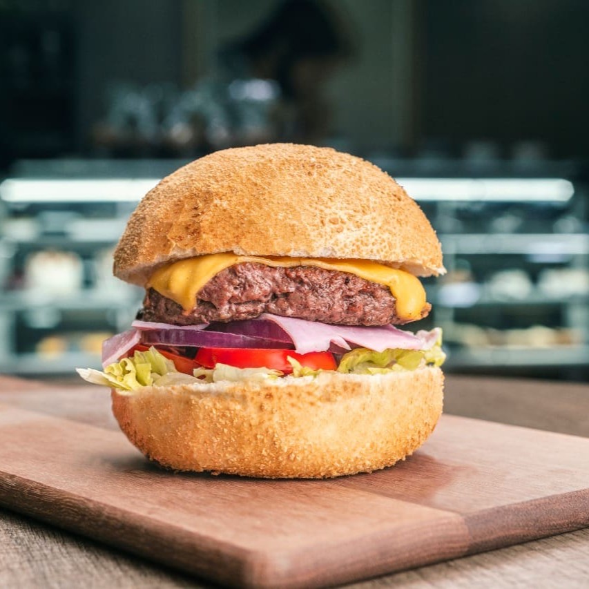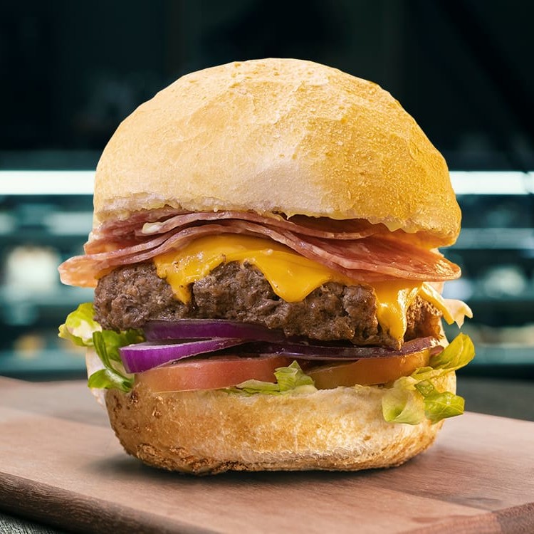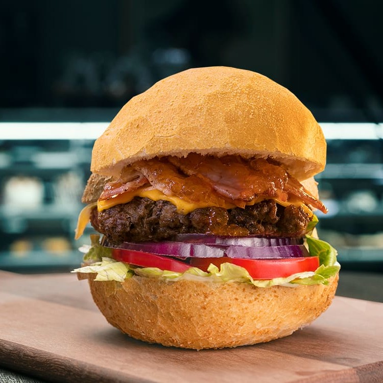 Você quer a receita da felicidade? Nós vamos te passar: hambúrguer artesanal, aquela famosa maionese da casa, salada fresquinha (alface, tomate e finas tiras de cebola), muito bacon e queijo cheddar no nosso pão d'água.