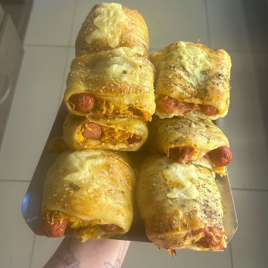 Pão, Frango Desfiado, Queijo Mussarela e Maionese da Casa.