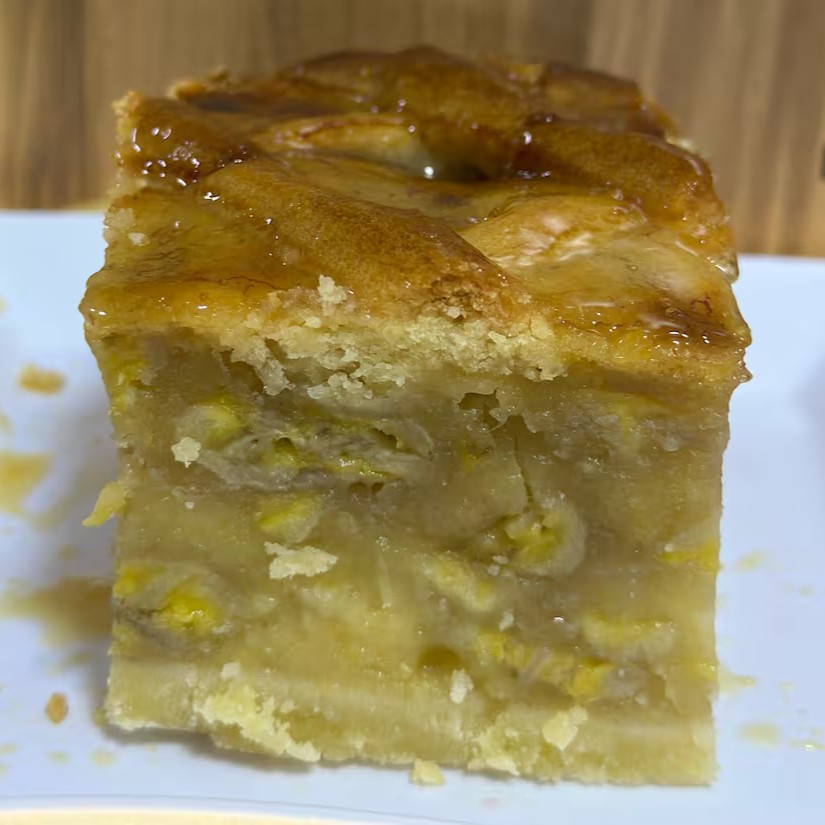Camadas de banana caramelizada e massa macia, com um toque de canela, perfeita para uma sobremesa reconfortante.