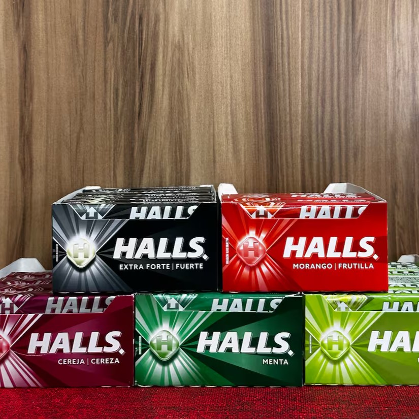 Pastilha refrescante Halls, ideal para aliviar a garganta e garantir um hálito sempre fresco. Sabor intenso em qualquer momento do Dia!