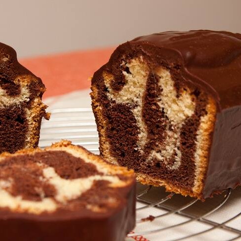 Bolo mármore. Além de bonito, o bolo mármore é delicioso. A mistura do cacau com a massa branca faz deste bolo um lanche ou sobremesa muito popular.