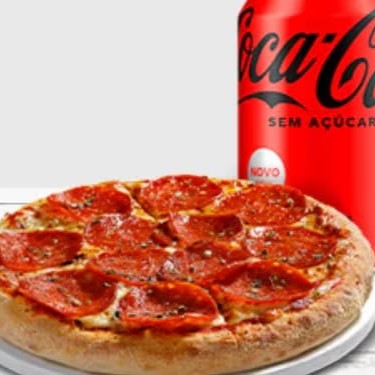 Pizza brotinho ( 4 pedaços ) mozarela calabresa e orégano acompanha coca cola normal , zero ou a que constar no estoque
