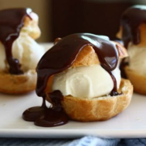Massa de bomba com recheio de creme e cobertura de chocolate meio amargo De 4 a 5 unidades
