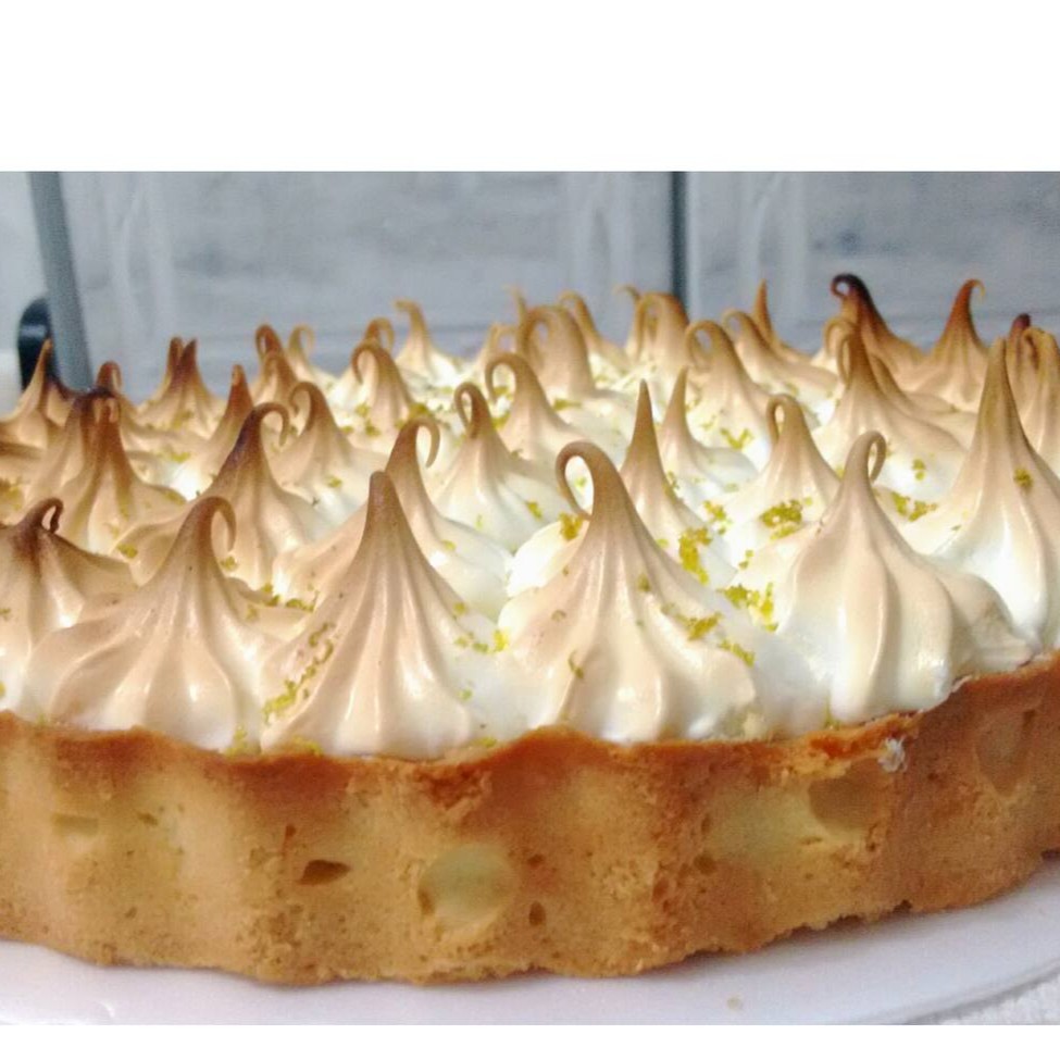 Massa flora com recheio de mousse de limão e cobertura de Marshmallow e raspas de limão.