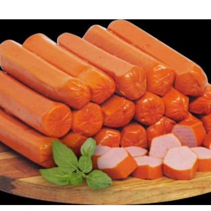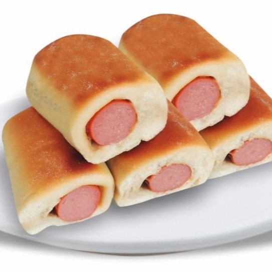 Massa doce com salsicha e batata palha na cobertura. Aprox. 20g cada unidade