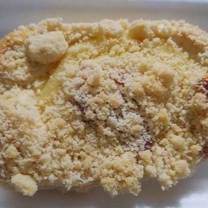 Pão doce, farofa doce, creme de confeiteiro, gotas de chocolate