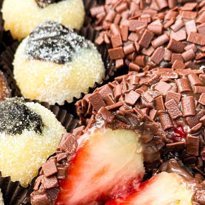 Moranguinhos frescos + chocolate premium = uma combinação que derrete na boca e no coração. Perfeito para presentear, compartilhar (ou devorar sozinho)!