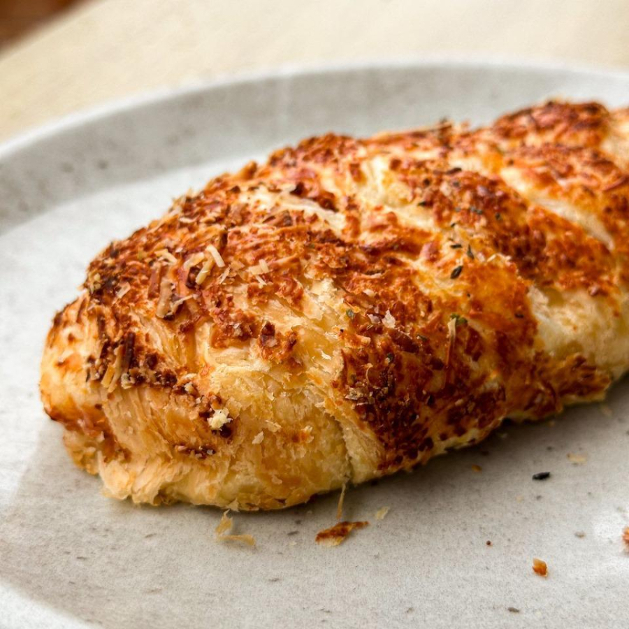 Massa folhada trançada, recheada com frango