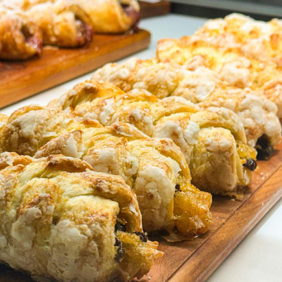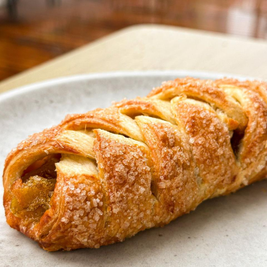Feita com massa folhada trançada, recheado com maçã.
