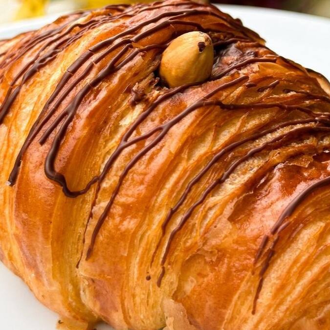 Croissant estilo francês recheado com chocolate meio amargo.