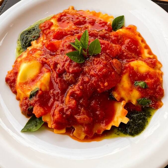Ravioli de mozarela de búfala e parmesão com molho de