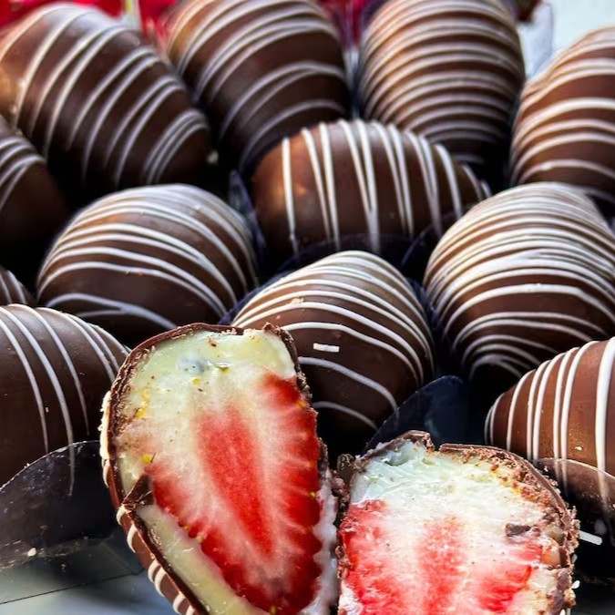 Um morango suculento envolto em camadas de chocolate premium - crocante por fora, explosão de sabor por dentro. Grande, intenso e irresistível, feito para quem gosta de se entregar aos prazeres da vida!