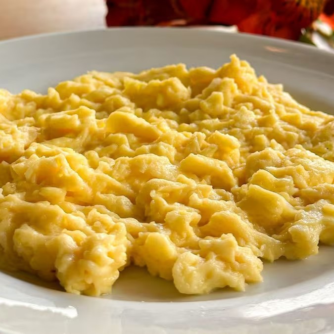 Ovos mexidos com manteiga no croissant.