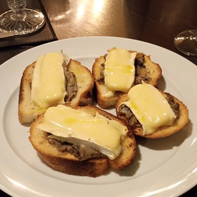 Bruschetta com funghi e queijo brie. (4 unidades)