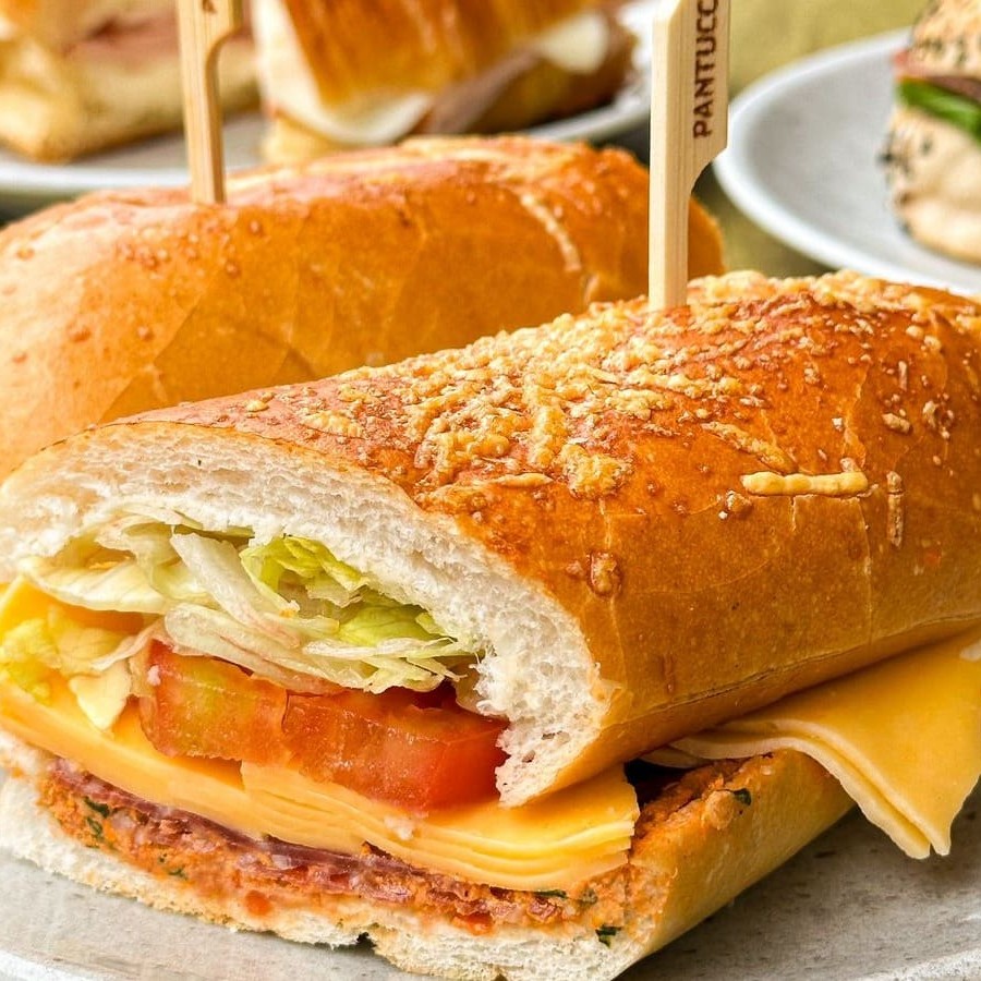 Salame, pasta de tomate seco, queijo prato, tomate fresco, alface americana. Descubra o ousado 'Salame Italiano',! Este suntuoso lanche apresenta generosas camadas de salame autêntico, enriquecido com uma vibrante pasta de tomate seco que agrega um sabor profundo e intenso. O queijo prato suave, adiciona uma cremosidade irresistível. Tudo isso é complementado por fatias de tomate fresco, trazendo um toque suculento, que unido à alface americana forma uma textura perfeita. Uma experiência culinária inesquecível em cada mordida!