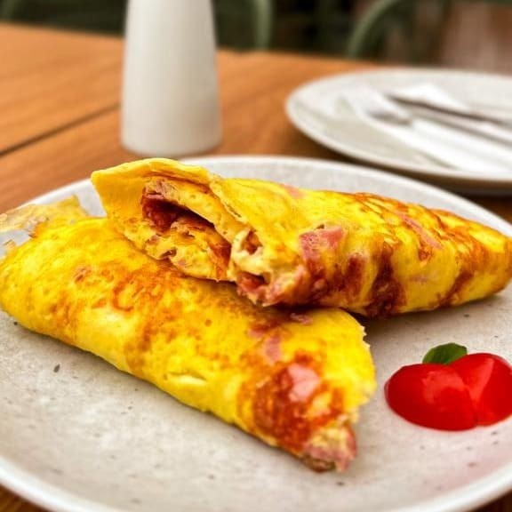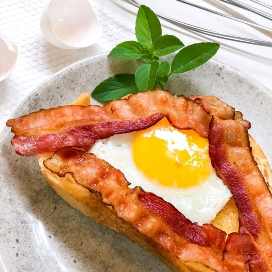 Pão, Ovo Gema Mole,bacon, Manteiga.