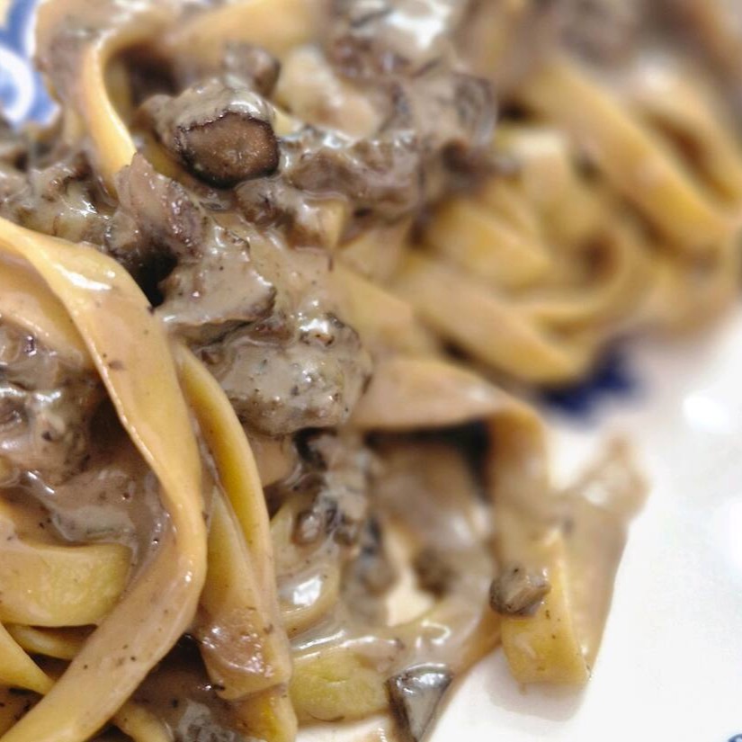 Talharin caseiro feito com nosso creme de funghi, finalizado com parmesão