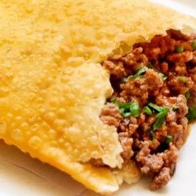 Pastel de 20cm com carne moída temperada.
