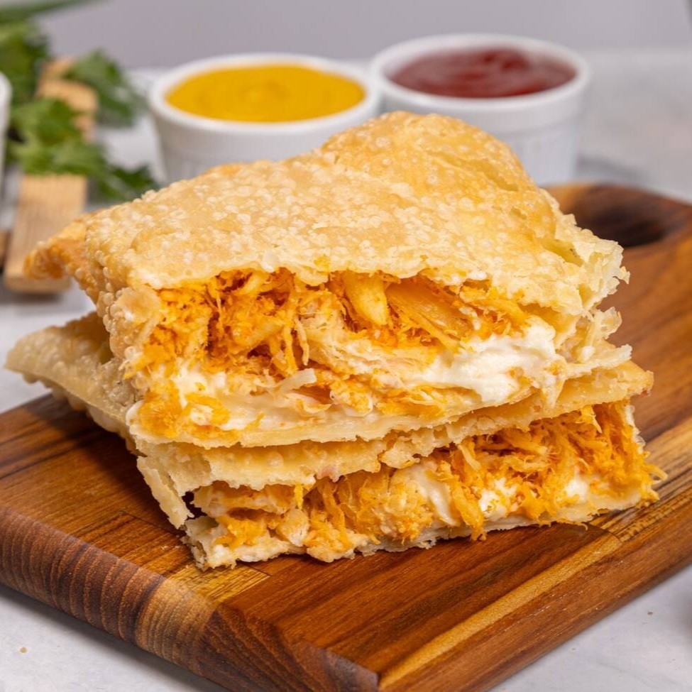Uma explosão de sabores: frango suculento e requeijão cremoso em uma massa crocante.