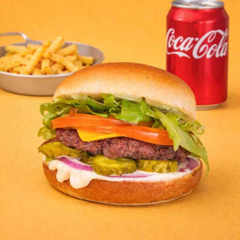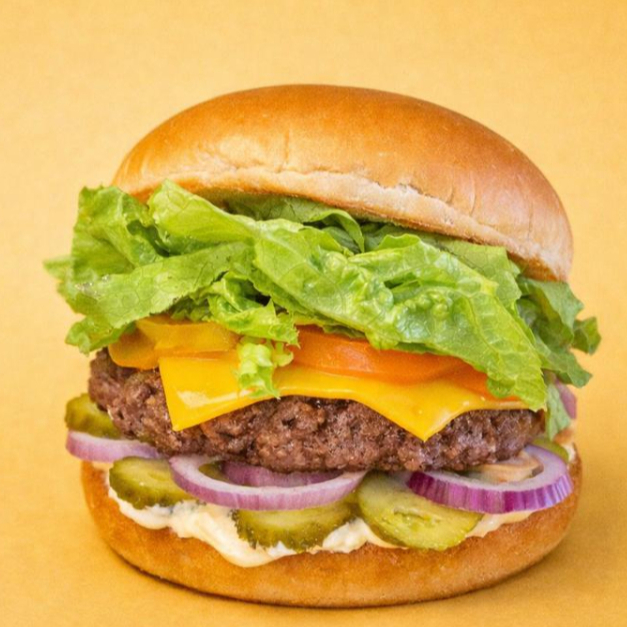 Um hambúrguer saudável de 150g. E saboroso com pão, carne, queijo, maionese defumada, cebola roxa, picles, tomate fresco e alface crocante para uma opção deliciosa e nutritiva.