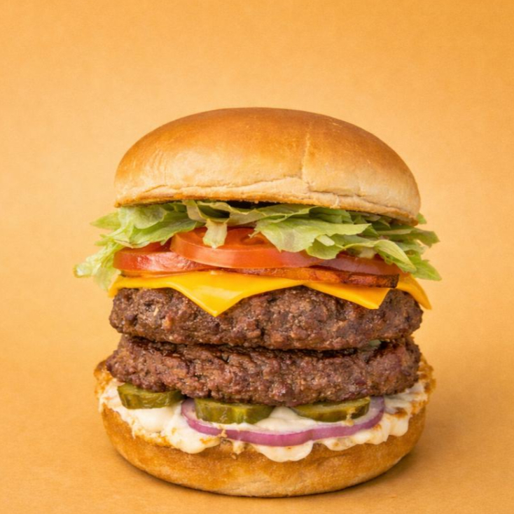 Smash Duplo: Um hambúrguer suculento e saboroso com dois smashs, queijo, maionese defumada, cebola roxa, picles, tomate fresco e alface crocante, para os amantes de carne com muito sabor.