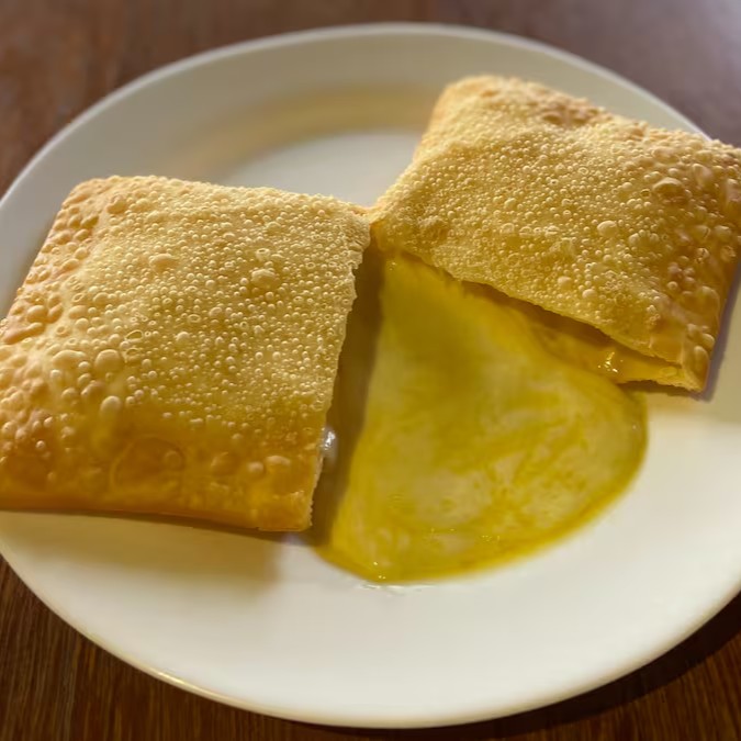 Pastel com recheio de queijo provolone, cheddar, queijo mussarela e cream cheese.