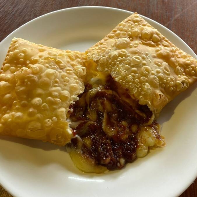 Pastel com recheio de queijo muçarela com goiabada