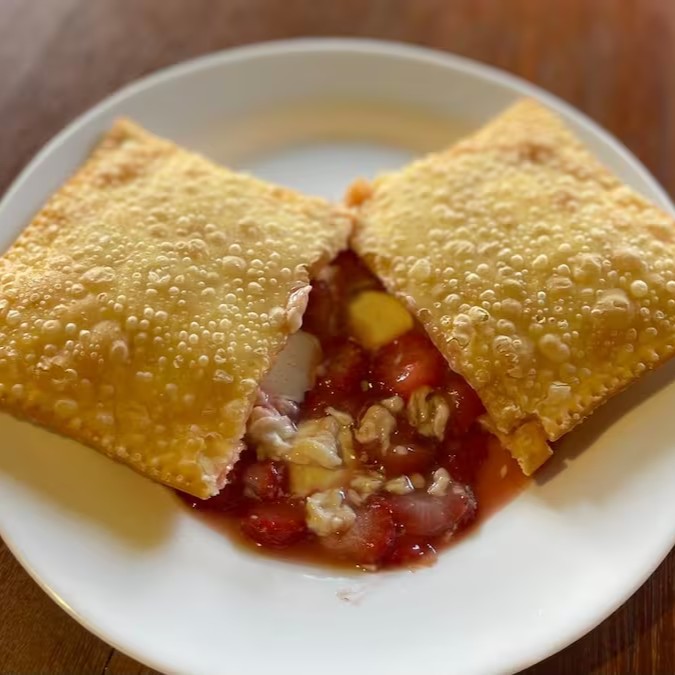 Pastel com recheio de banana e chocolate branco